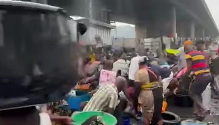 Hunger or Greed? Caution Thrown To The Wind As Resident Scoop Fuel From Overturned Tanker at Tincan Liverpool Bridge
