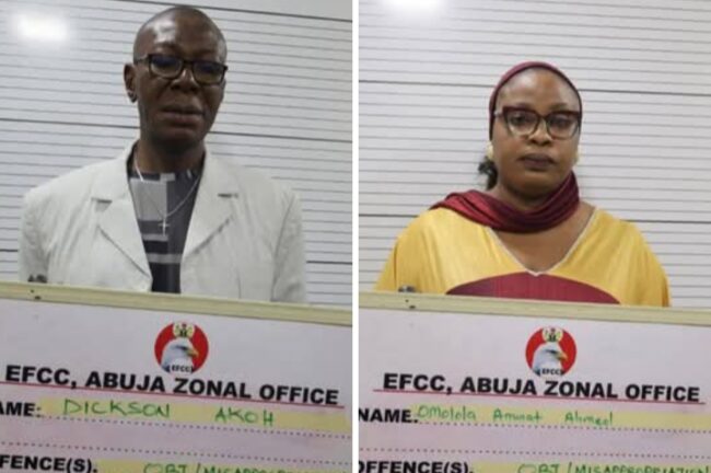 The Abuja Zonal Directorate of the Economic and Financial Crimes Commission, EFCC, on Thursday 11, December, 2025, arraigned the Commandant of the Nigeria Peace Corps, Dickson Akon and the Director of Finance of the Corps, Omolala Aminat Ahmed, before Justice H. B. Yusuf of the Federal Capital Territory, FCT High Court, Abuja.