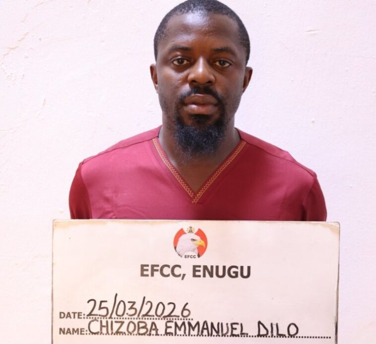The Economic and Financial Crimes Commission, EFCC, Enugu Zonal Directorate, has arraigned a 29-year-old businessman, Chizoba Emmanuel Dilo, before Justice S. N. Odili of the Enugu State High Court sitting in Onitsha, Anambra State, over an alleged N64 million fraud