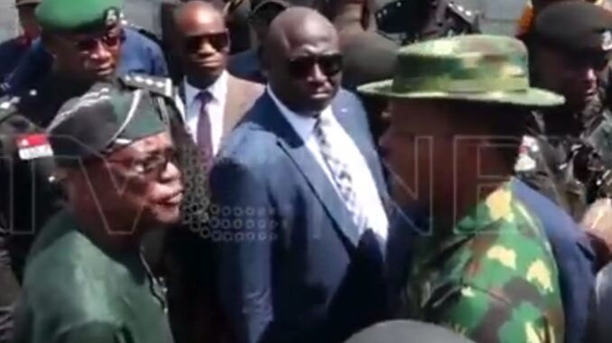 FCT Minister Nyesom Wike is having a heated clash with some Nigerian soldiers over a land property in Abuja.