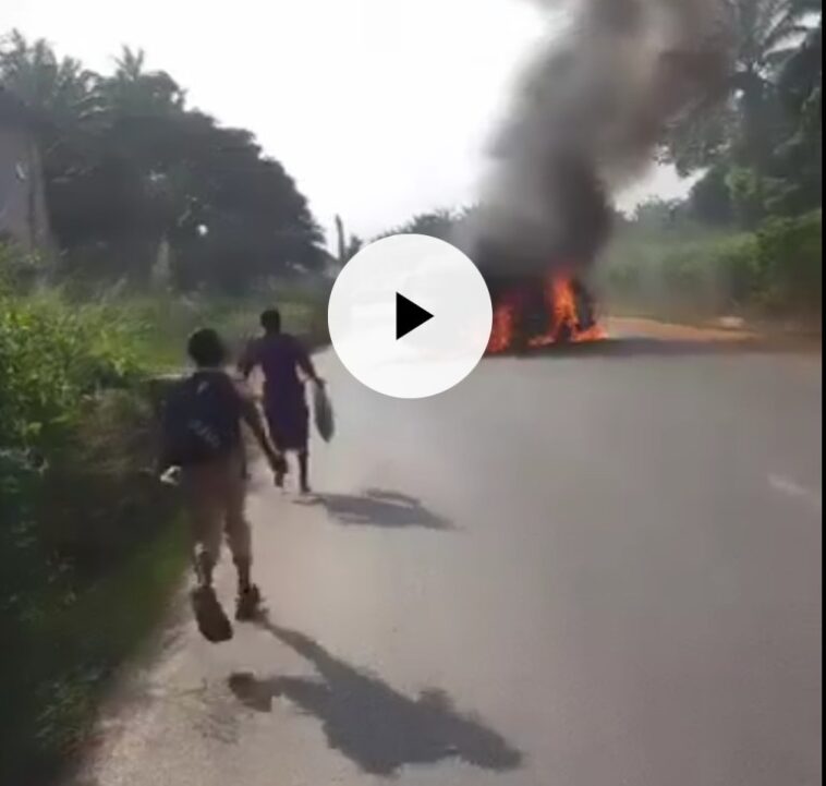 This was corroborated by videos from the scene, currently trending on social media, showing the vehicle on fire while residents scampered for safety.