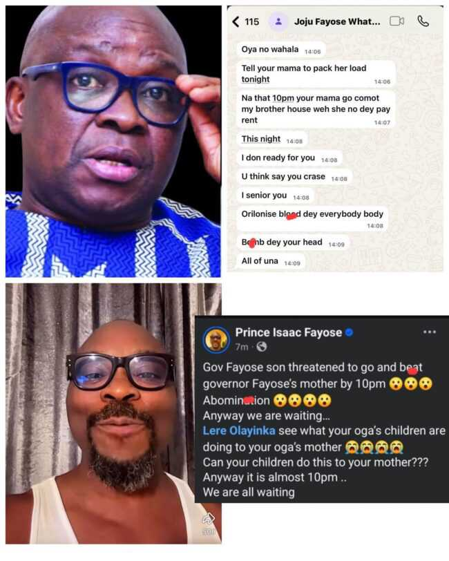 In a new social media outburst, Isaac claimed that Governor Fayose’s son once threatened to physically assault their aged mother during a heated family dispute. According to him, the shocking confrontation was part of a long-standing pattern of disrespect and breakdown of family values within the household.