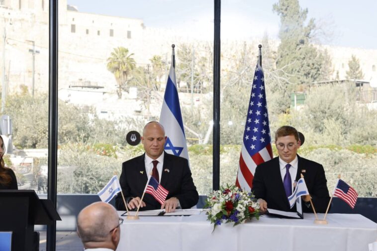 The memorandum was signed by the Head of the National AI Directorate, Brig.- Gen. (Res.) Erez Eskel, and the U.S. Under Secretary of State for Economic Affairs Jacob Helberg, in the presence of Foreign Affairs Minister Gideon Sa’ar and U.S. Ambassador to Israel Mike Huckabee.