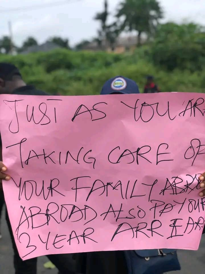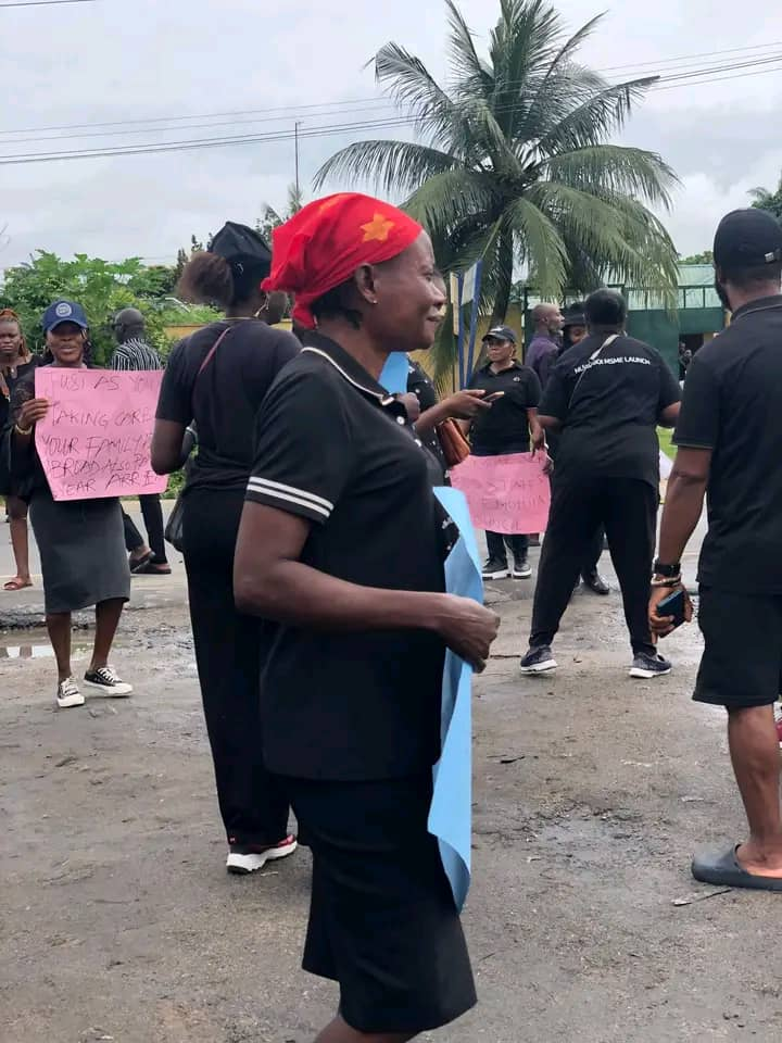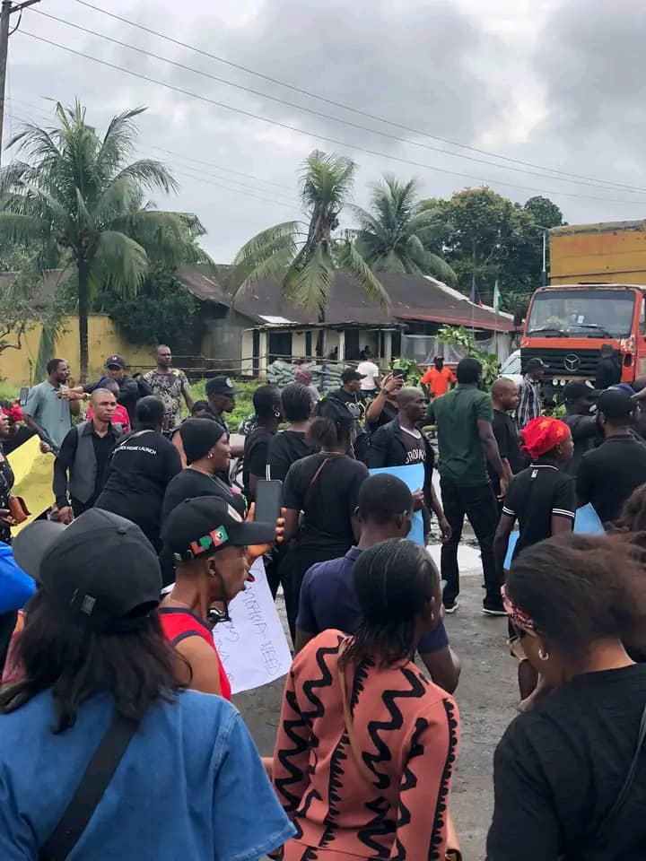 the protesters carrying various placards with different inscription blocked East west Road. to drive home their demand and call on the state governor to call Dr Chidi LLYOD to order