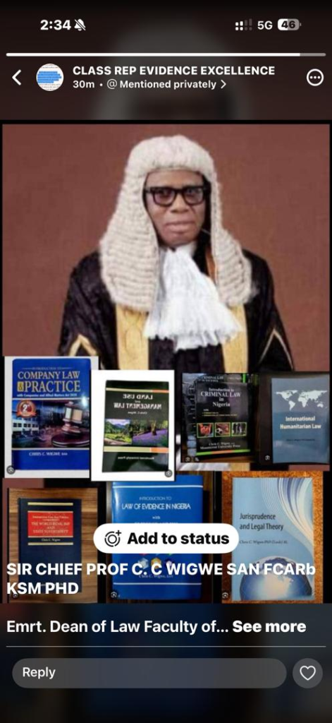 Interestingly, the admiration for him among postgraduate students recently found an unusual expression. In a show of appreciation, some students designed a well-crafted digital portrait of the professor and began using it as their WhatsApp status. The gesture quickly circulated within postgraduate law circles, reflecting the level of respect and admiration many have for his mentorship and leadership.
