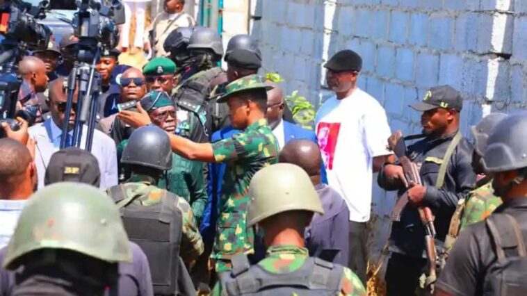 In the video, some trucks were seen leaving the area while residents were seen cheering. One of the voices said, “Shame on you, Wike don go with his trucks, soldiers have won this fight.”This led to a confrontation between the security details of Wike and the soldiers at the land venue.